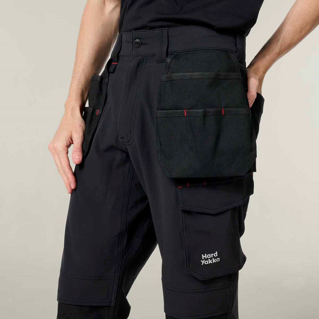 Designed for durability without the bulk, the ToughMaxx Lite Holster Pocket Trouser is built from a recycled polyester blend with stretch for comfort and flexibility. Featuring articulated knees, UPF50 sun protection, and a regular fit, these men's work trousers are made to move with you while standing up to hard wear. A reliable choice for workers who need lightweight toughness backed by Hard Yakka's heritage.