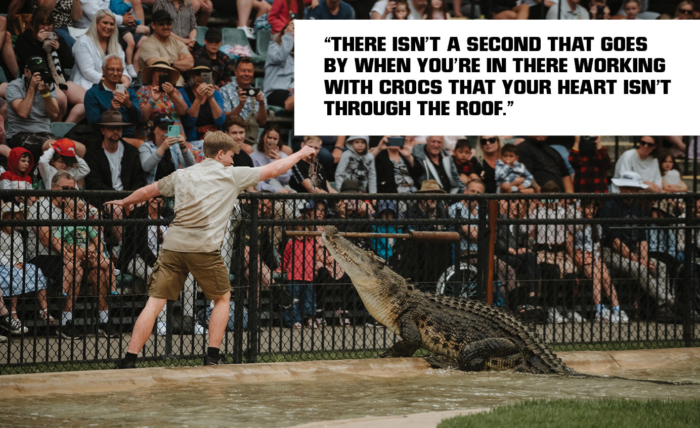 It's a scary thing, and it's an adrenaline rush every time. I love it. I thrive on it. It's my favourite thing ever to jump in there with our beautiful crocodiles. We allow our crocs to strike out of the water, using all of their predatory instincts. It's definitely hair raising at times, but by doing that, they live an amazing life, and they really enjoy themselves. We can also educate the world on how important these guys are. They are a true apex predator. There isn't a second that goes by when you're in there working with crocs that your heart isn't through the roof. Let me tell you, it's the best. It’s ok if it’s a little scary, it’s how you respond to the fear, you’ve got to have the right people around you and you have to be willing to put in the hard yards every single day.